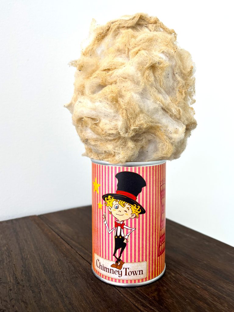 缶の中身はぎっしりのコットンキャンディー(綿菓子)。ふわふわの綿菓子を町を覆う「煙」に見立て、黒ゴマの香ばしさで煤(すす)を表現。口の中で煙のように儚く消える食感は、星を見つけた瞬間の驚きのよう。食べ終えた後の缶は、自分だけの「星」を隠す宝物入れとしてお楽しみいただける、冒険の記憶が詰まった逸品です。